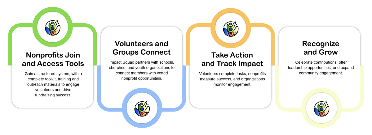 Whether you’re a nonprofit seeking more hands-on support, a student earning service hours, or a community group ready to make an impact, Impact Squad provides the user-friendly tools to turn purpose into action.